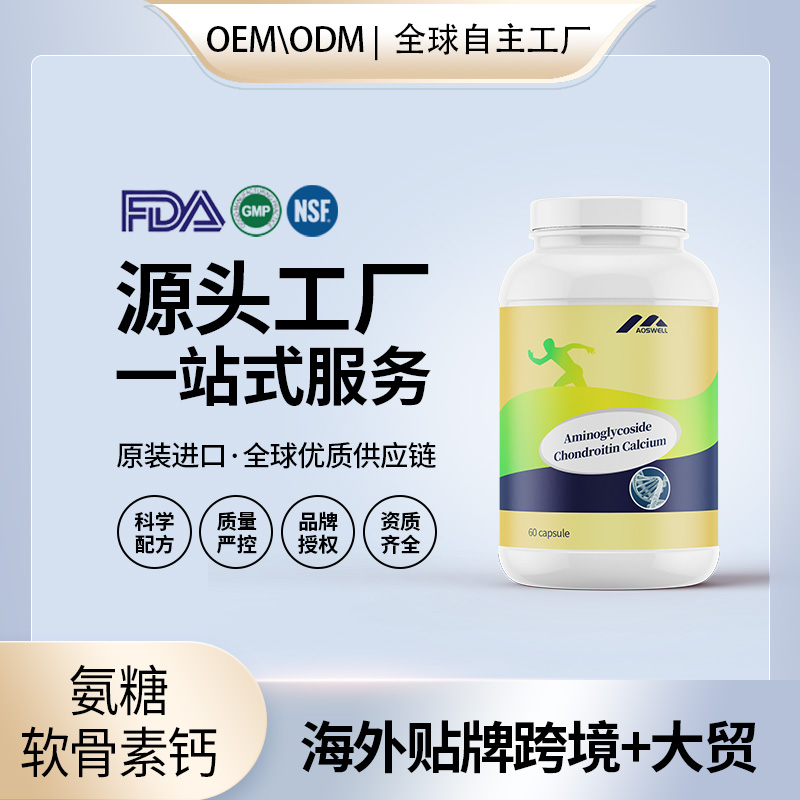會銷熱門產(chǎn)品貼牌定制青晨牌氨糖硫酸軟骨素鈣膠囊oem代加工批發(fā)供貨大包藍帽